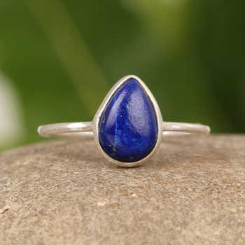 Top Selling 925 Sterling Silver Dainty Design Fine Ring 10x14mm Lapis Lazuli Gemstone Pear Shape for Women's Engagement Party