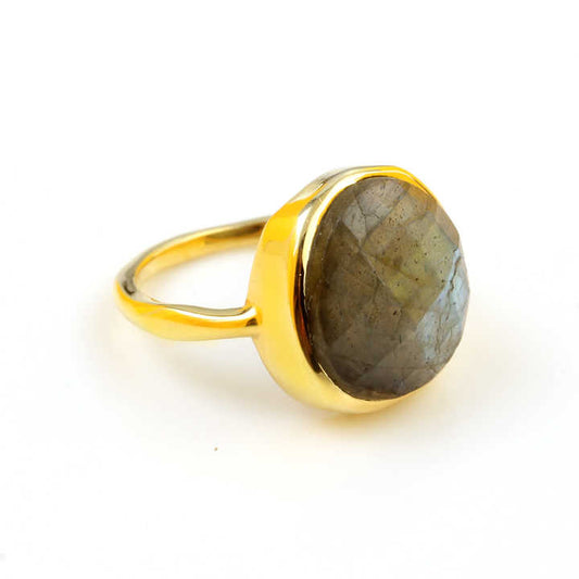Top Selling 925 Sterling Silver Handmade Dainty Ring for Women With 10mm Blue Flash Labradorite Stone Bezel Setting Anniversary