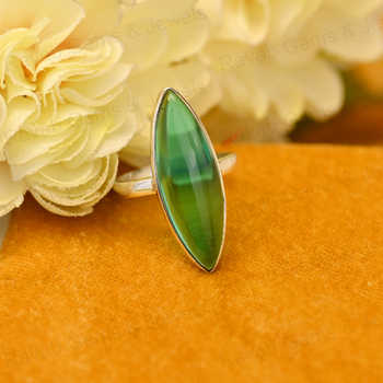 Top Selling 925 Sterling Silver Women's Ring Green Fluorite Quartz 10x30mm Marquise Bezel Setting Vintage Handmade Rhodium for