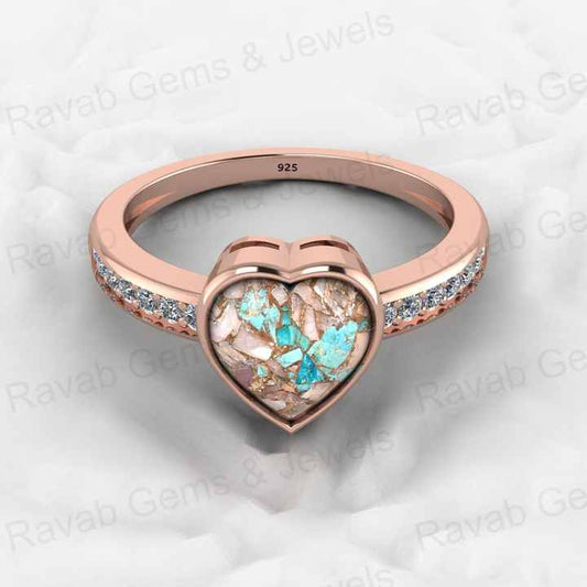 Top Selling Genuine 925 Silver 8x8mm Heart Pink & Blue Copper Turquoise Gemstone Ring for Women Valentine Gift Idea Jewelry