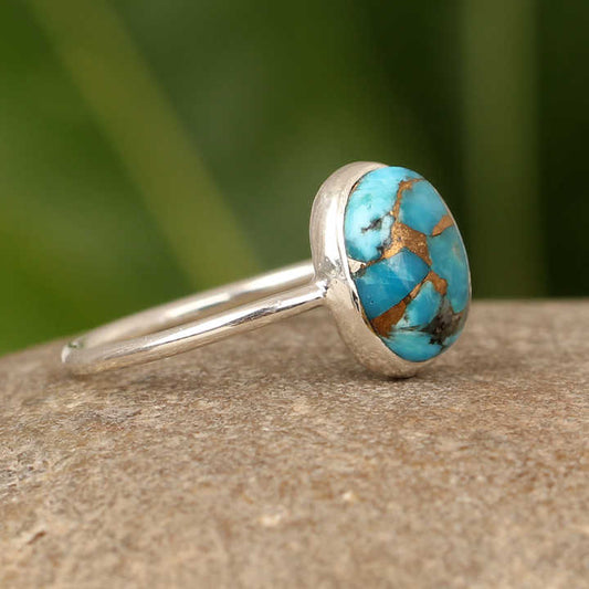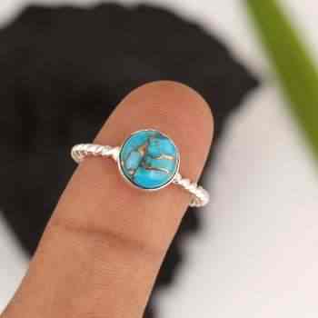Top Selling 925 Sterling Silver Women's Handmade Ring Solid 10mm Gemstone in Natural Blue Copper Turquoise Shape Twisted Style