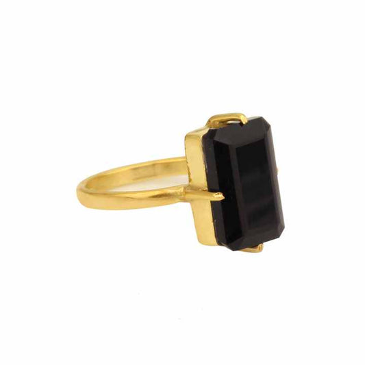 Top Selling Genuine 8x16m Octagon Emerald Cut Black Onyx 18k Gold Plated Sterling Silver Dainty 4 Prong Ring Women Fine Jewlery