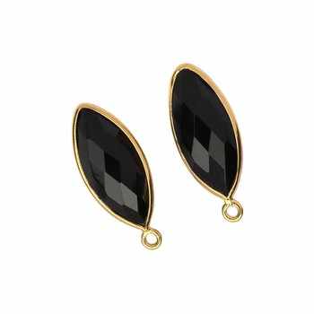 Best Quality 8x16mm Faceted Marquise Shape Bezel Setting Genuine Black Onyx Gemstone 925 Silver Charm Pendant Necklace Bracelet