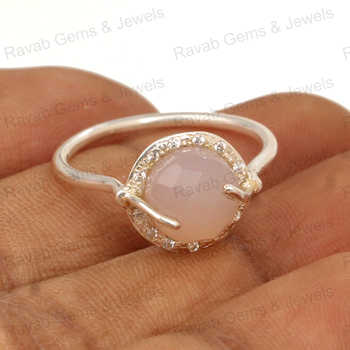 Best Quality 925 Sterling Silver 12mm Rose Cut Prong Setting Handmade Dainty Cocktail Ring Women Natural Rose Quartz CZ Fine