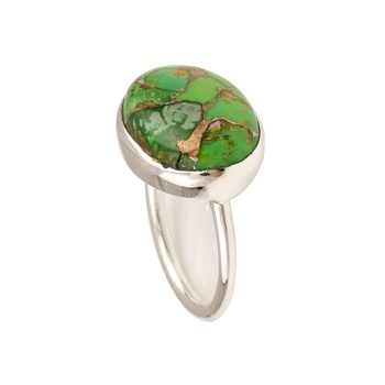 Best Quality 12x16mm Oval Ring Women New Design Kingman Green Copper Turquoise Gemstone Genuine Sterling Silver Fine Rings
