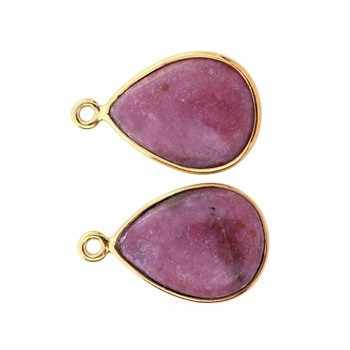 Best Quality 925 Solid Sterling Silver 18K Gold Plated Pink Rhodonite Pear Bezel Connector Fine Pendants Charms Necklace Making