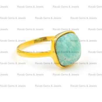 Best Quality 12mm Cushion Bezel Shape Ring for Women Solid 925 Sterling Silver 18k Gold Plating Natural Amazonite Fine Jewelry