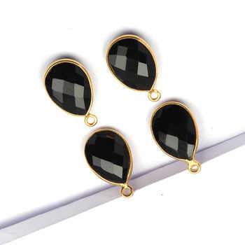 Best Quality 12mm Pear Drop Shape Natural Black Onyx Gemstone Genuine 925 Sterling Silver Gold Plated Bezel Pendant Fine Jewelry
