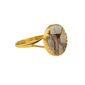 Best Quality 925 Sterling Silver 18K Gold Plated Vintage 10mm Bezel Cut Natural White Calcite Copper Gemstone Fine Rings Women
