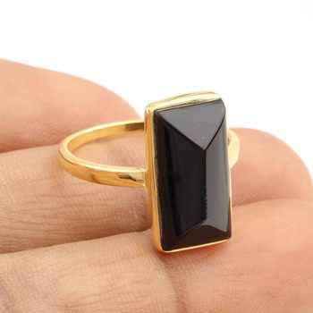 Best Quality 8x16mm Natural Black Onyx Gemstone Ring 18K Gold Plated 925 Silver Rectangle Octagon High Quality Fine Jewelry