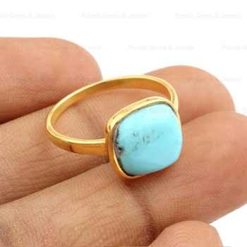Beautiful High Quality 12mm Genuine Blue Kingman Arizona Turquoise Minimalist Dainty 18K Gold Plated Sterling Silver Ring Her