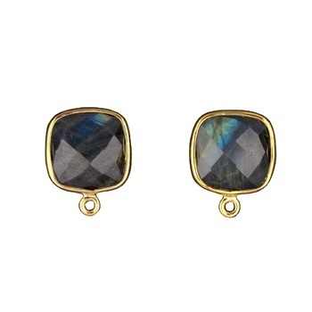 Best Quality 925 Solid Sterling Silver 18K Gold Plated Natural Labradorite Cushion Shape 12mm Checker Cut Fine Pendants Gift