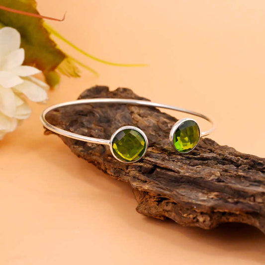 Beautiful Handmade Solid 925 Silver 10mm Round Shape Peridot Hydro Quartz Bezel Adjustable Cuff Bangle Fine Jewelry For Women