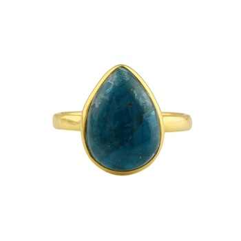Best Quality 18K Gold Plated Minimalist Dainty Pear Shape Ring 10x14mm Neon Apatite Gemstone Fine Jewelry Design for Her