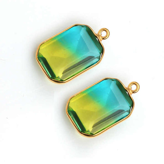 Beautiful High Polished Bio-Tourmaline Doublet Quartz Gemstone Gold Plated Sterling Silver Station Rectangle Charm for Pendant