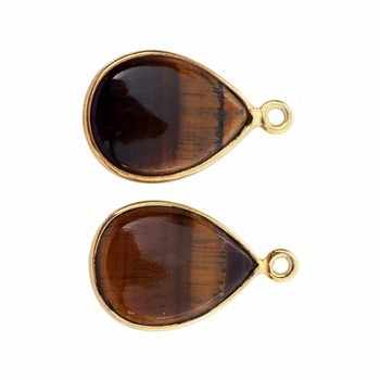 Best Quality Solid 925 Sterling Silver 18K Gold Plated 12x16mm Bezel Setting Natural Tiger Charms Pendant Fine Pendants Charms