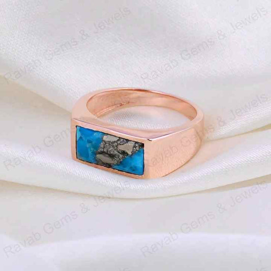 Best Quality Natural Pyrite Turquoise Gemstone Solid 925 Sterling Silver 18k Rose Gold Plated Ring For Women Party Fine Jewelry