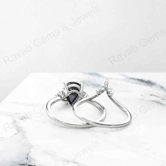 Best Quality 925 Sterling Silver Natural Black Onyx 7x9mm Pear Marquise Bridal Set Ring for Women Handmade Fine Luxury Jewelry