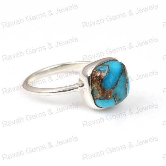 Best Quality 925 Sterling Silver Women's Ring Handmade Natural Blue Copper Turquoise Cushion Shape 12mm Solid Bezel Setting Fine