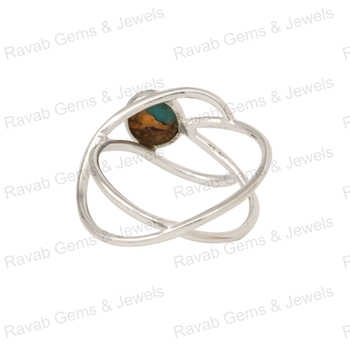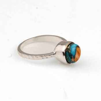 Best Quality Solid 925 Sterling Silver Fine Women's Ring Handmade Natural Oyster Turquoise 8mm Bezel Setting Premium Jewelry
