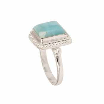 Best Quality Handmade Boho Style Square Shape Ring Genuine 10mm Dominican Larimar Gemstone Set in Genuine Sterling Silver