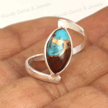 Best Quality Solid 925 Sterling Silver Fine Ring Multicolor Oyster Turquoise Marquise Shape 7x15mm Bezel Setting Rhodium