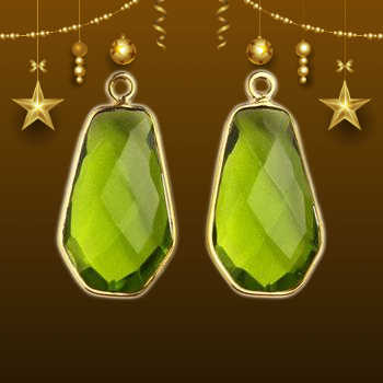 Best Quality Solid 925 Sterling Silver 18k Gold Filled Peridot Quartz Hydro 12x20mm Checker Cut Loop Charm Connector Pendant