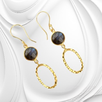 Best Quality Solid 925 Sterling Silver Genuine Labradorite 8mm Round Rose Cut 18k Gold Plated Drop Dangle Earring for Women