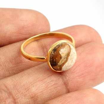 Best Quality Gold-Plated Solitaire Ring Natural Picture Jasper Gemstone Dainty Beautiful Design for Weddings Parties Gifts