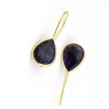 Best Quality Solid 925 Sterling Silver 18K Gold Plated Grey Chalcedony Checker Cut 10x25mm Long Pear Drop Earrings for Women