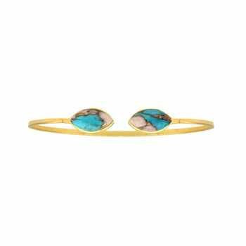 Best Quality Solid 925 Sterling Silver 18k Gold Plated Pink Copper Turquoise Marquise Adjustable Cuff Bangle Fine Jewelry