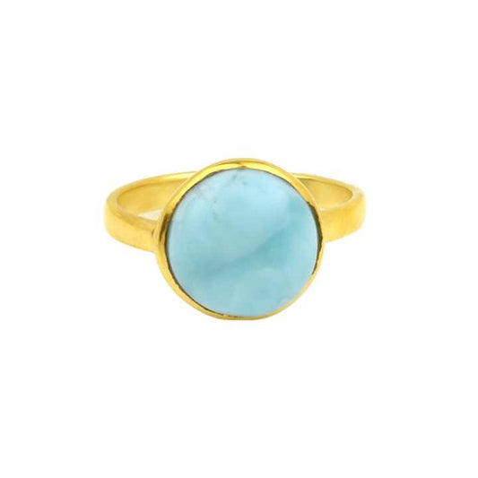 Best Quality Solid 925 Sterling Silver 18k Gold Plated Natural Larimar Round 10mm Bezel Setting Ring for Women Handmade Jewelry