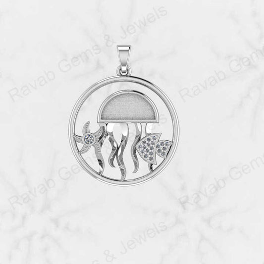 25mm Circle Octopus Starfish With CZ Blank Bezel Charm Pendant Mounting Setting High Quality 925 Silver Breastmilk Ashes Jewelry