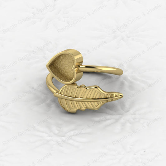 Genuine 925 Silver Leaf & Heart Pear 6x8mm Semi Mount Blank Setting Ring for Gemstone Ashes & Resin Jewelry Findings & Jewelry
