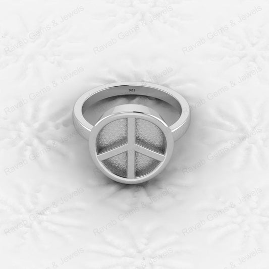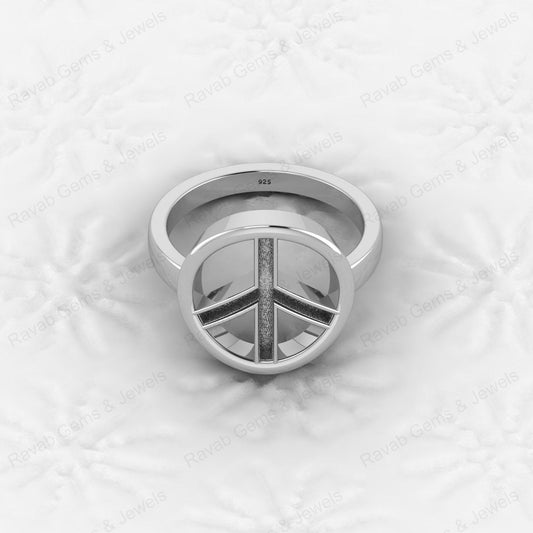 Genuine 925 Silver Peace Symbol Semi Mount Blank Setting Ring for DIY Zodiac Jewelry Resin Ashes Work Keepsake Suppliers