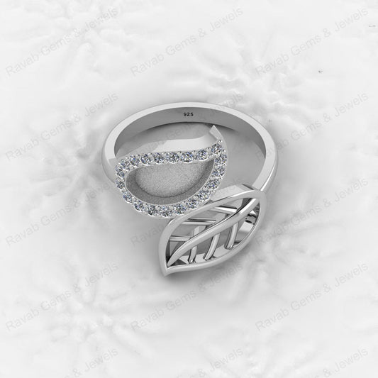 Genuine 925 Silver Nature Inspired Leaf With CZ Semi Mount Blank Setting Ring Good for Resin & Ashes Work Keepsake DIY Jewelry