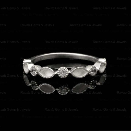 Genuine 925 Silver 2x4mm Marquise With CZ Half Eternity Semi Mount Blank Setting Ring Good for Keepsake Breastmilk Jewelry