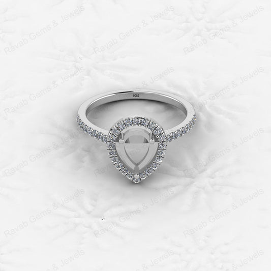 Genuine 925 Silver Pear 6x8mm Semi Mount Prong Blank Setting Ring for Gemstone Ashes & Resin Jewelry Findings & Jewelry Export