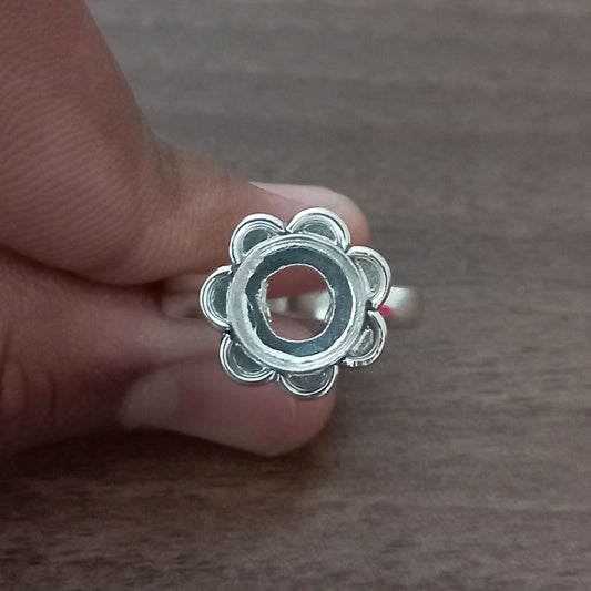 Genuine 925 Sterling Silver 12mm Round 4 Prong Setting Semi-Mount Blank Setting Empty Ring Handmade Custom Jewelry Suppliers