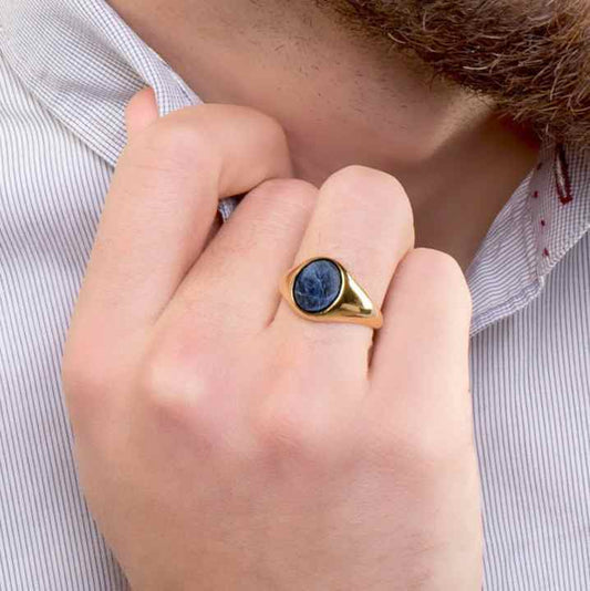 Genuine 925 Startling Silver Natural Sodalite Oval Cabochon 10x12mm Gemstone Mens Signet 18k Gold Plated Gifted Handmade Ring