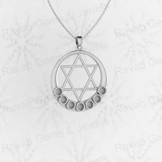 Genuine 925 Silver Star David Chakra Semi Mounting Blank 42x34mm DIY Jewelry Finding Components for Custom DIY Pendant Settings