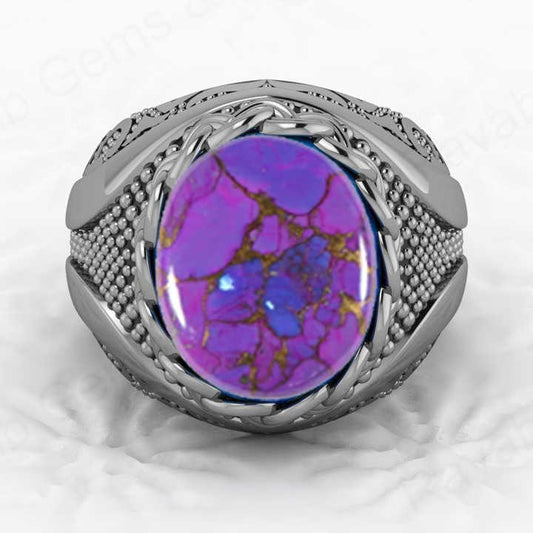 Genuine 925 Sterling Silver 13x15mm Mohave Purple Copper Turquoise Oval Turkish Men's Ring for Customized Fine Jewelry