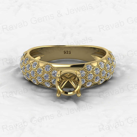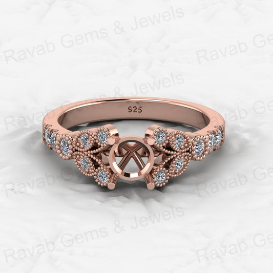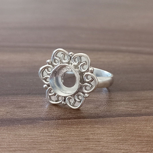Genuine Solid 925 Sterling Silver Filigree Clear CZ Semi Mount Blank Setting Ring Good for Ashes & Resin Work Breastmilk Jewelry (Copy)