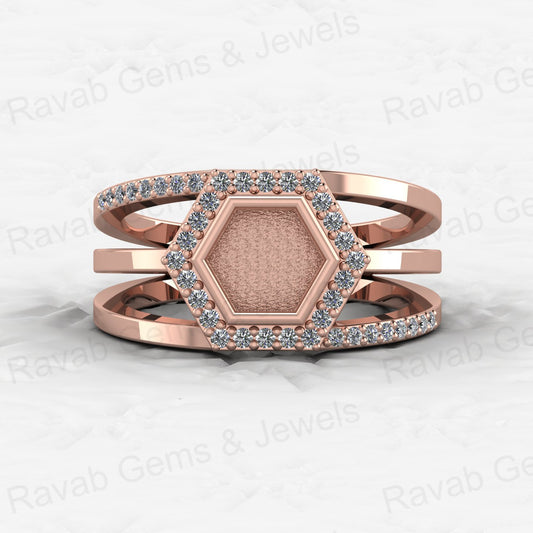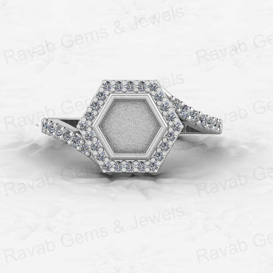Genuine Solid 925 Sterling Silver Hexagon Shape Semi Mount Blank Setting Ring Good for Ashes & Resin Work Breastmilk Jewelry