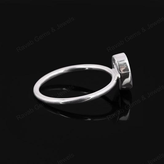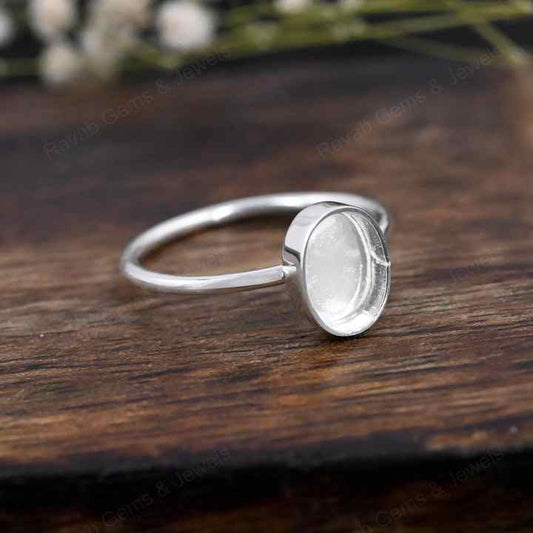 Genuine Solid 925 Sterling Silver Octagon 6x10MM Round Bezel Setting Semi-Mount Blank Setting Simple Band Fine Ring For Women