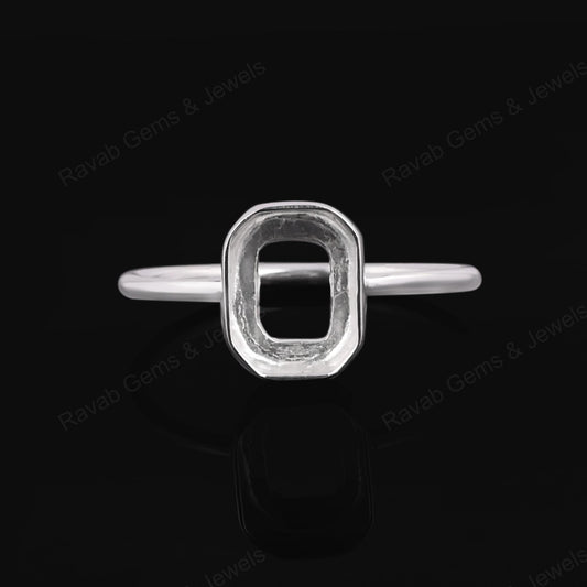 Genuine Solid 925 Sterling Silver Octagon Shape 8x10mm Bezel Setting Semi-Mount Blank Setting Simple Band Fine Ring For Women