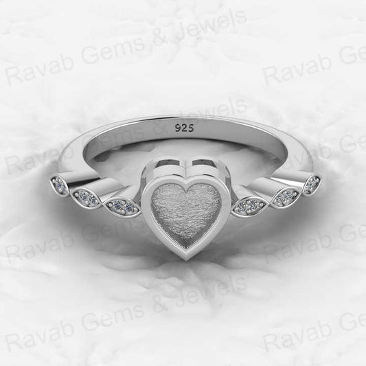 Genuine Solid 925 Sterling Silver 6mm Heart Shape Semi Mount Blank Setting Ring Good for Ashes & Resin Work Breastmilk Jewelry