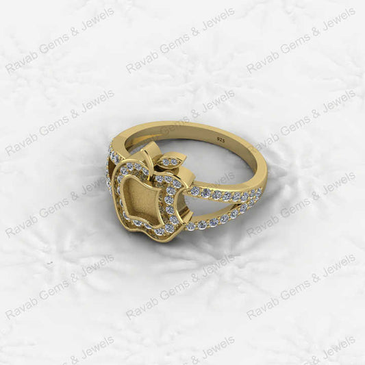 Genuine Solid 925 Sterling Silver Apple Brand Logo With CZ Semi Mount Ring Bezel Setting for Breastmilk and Ashes Resin Jewelry