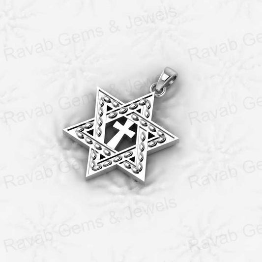Genuine Solid 925 Sterling Silver 29mm Cross in Star of David Pendant Charm Necklace Valentine Fine Jewelry Pendants & Charms