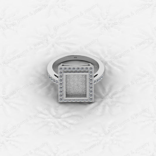 High Quality 925 Silver Rectangle 8x10mm Semi Mount Blank Setting Ring for Gemstone Ashes Resin Jewelry Supply